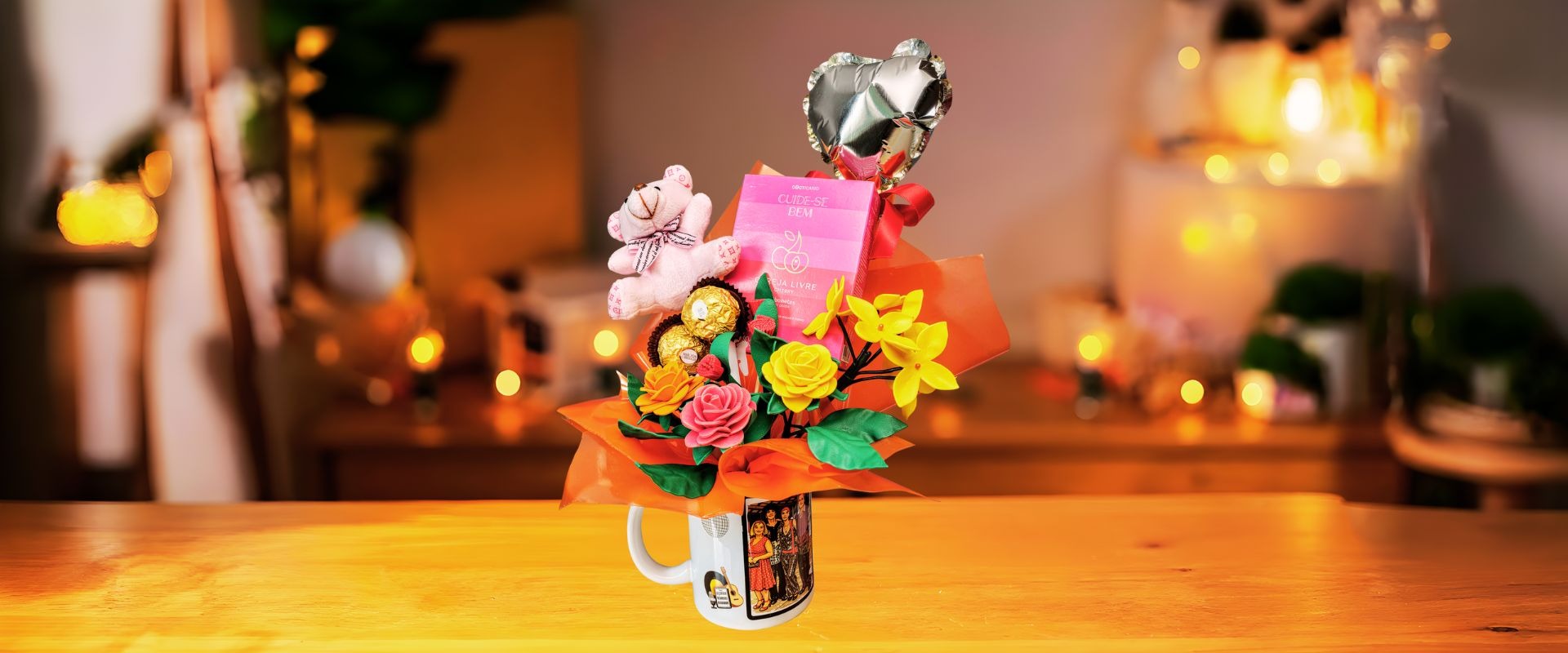 Escolha sua caneca favorita e, se preferir, nós criamos o arranjo perfeito para acompanhá-la.